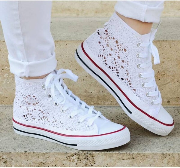 VICTORIA Baskets montantes blanche en dentelle du 36 au 41