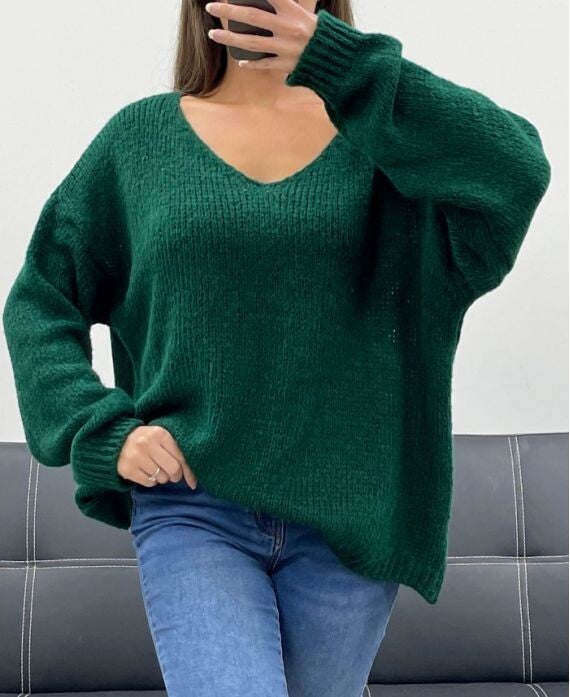 VALENTINE pull vert tout doux oversize jusqu'au 50