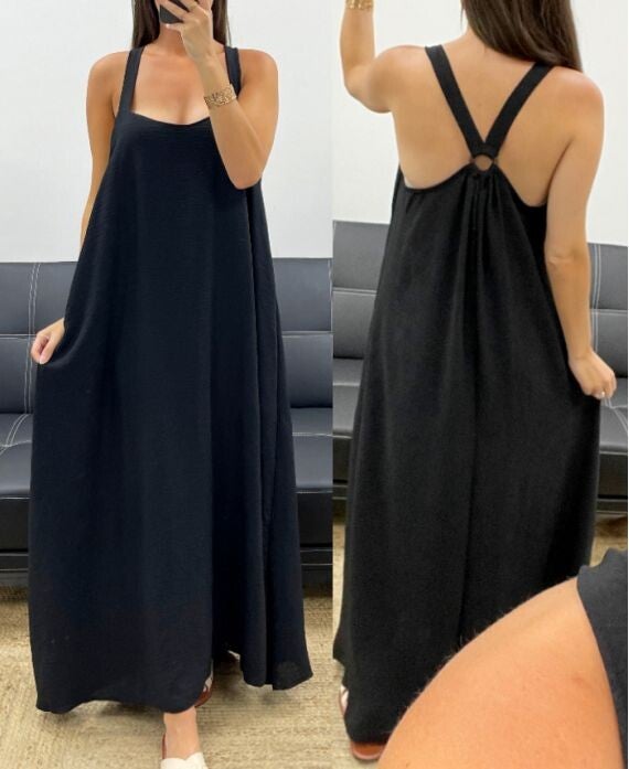 AMELIE robe longue noire dos boucle jusqu'au 46