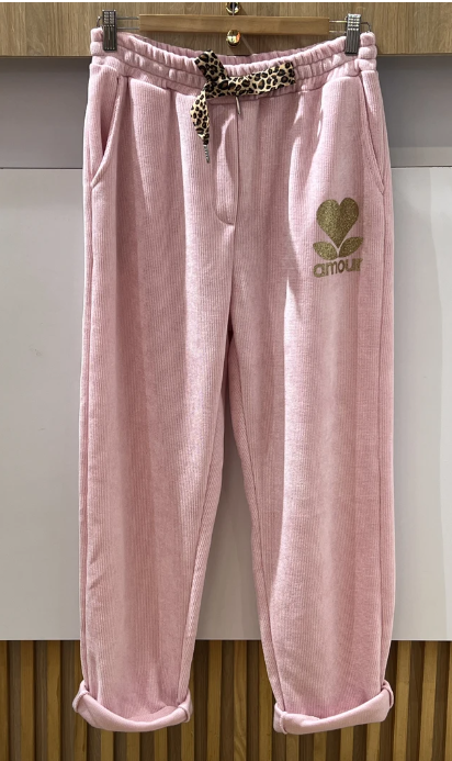 AMOUR Pantalon style jogging rose poudré effet velours " amour " jusqu'au 46/48