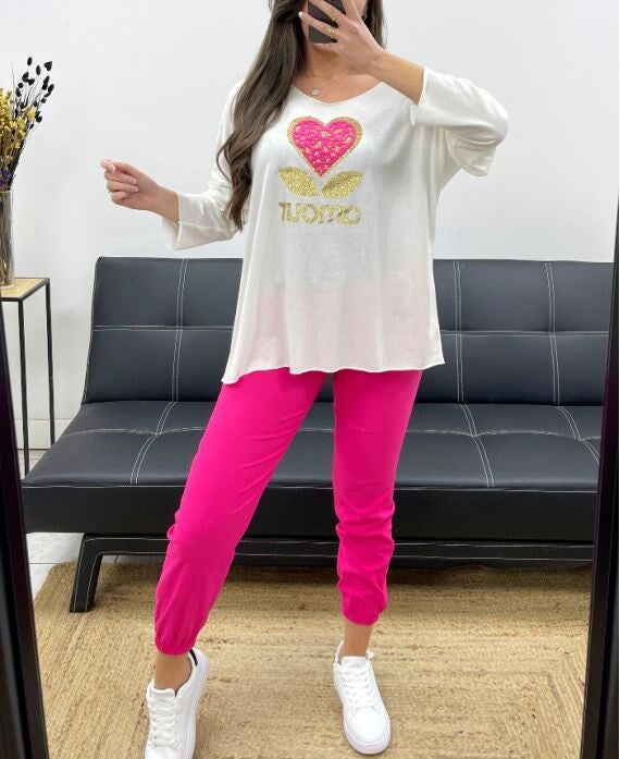 A porter sur un pantalon ,un jeans ou une jupe , c'est au choix.