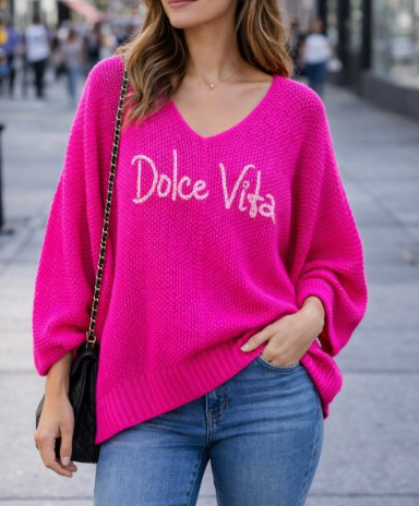 EMMA pull rose fushia dolce vite tout doux oversize jusqu'au 46
