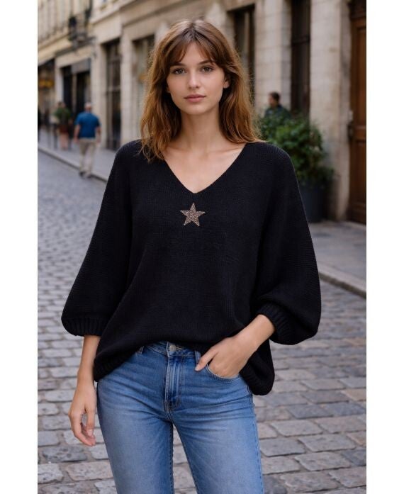 LOLA pull noir étoile strass jusqu'au 46